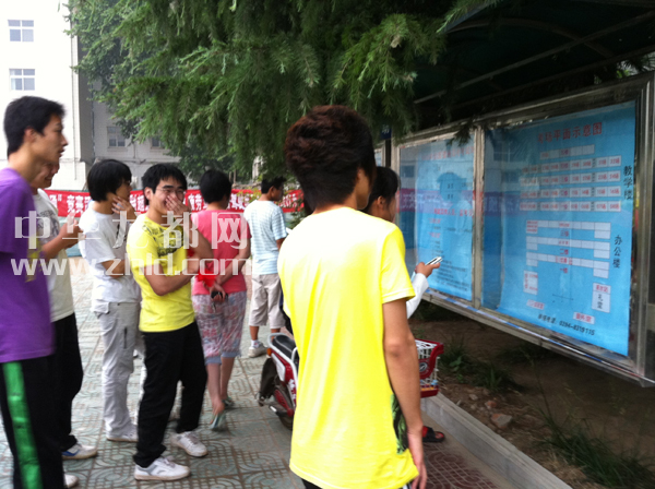 上圖:考生們陸續(xù)到所屬考點查看考場平面示意圖。  (記者 王映攝)