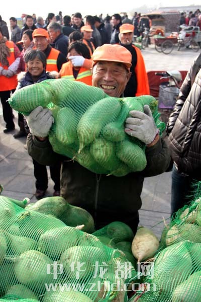 當天上午,淮陽縣太昊陵廣場人頭攢動,1000余名貧困家庭代表早早地來到現(xiàn)場等候。9時許,“愛心蘿卜”開始免費發(fā)放。僅一上午時間,20萬斤蘿卜就被認領(lǐng)一空。