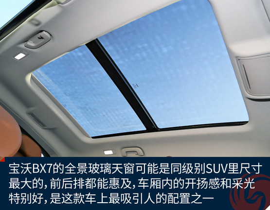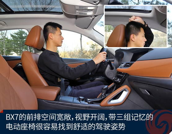 BX7是一款同時(shí)擁有5座、6座和7座布局的SUV車型,這款長度超過4.7米的SUV的確有能力在行李廂布置第三排座椅。不過這次我們試駕的車型仍是五座配置,對于這樣尺寸級(jí)別的SUV前后排空間自然都不是問題,相當(dāng)寬闊而且乘坐感非常舒服。旗艦版的配置亦相當(dāng)豐富,三溫區(qū)自動(dòng)空調(diào)和前后排座椅加熱,以及同級(jí)別堪稱無敵的超大全景天窗,在配置方面很有吸引力,而再一次綜合其價(jià)格來看,明顯優(yōu)于同級(jí)別平均水平的標(biāo)準(zhǔn)配置再一次詮釋了“觸手可及的豪華”這一產(chǎn)品理念。