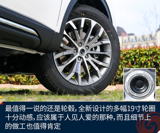 開眼角的設(shè)計雖然已經(jīng)有一陣子了,但是哈弗H6也是剛剛用上,而且頭燈的設(shè)計很簡潔,但是與六邊形的前進氣格柵搭配的感覺剛剛好,在視覺上帶來了十分不錯的沖擊力。車側(cè)的線條比起之前的設(shè)計更加孔武有力,有那么一絲絲肌肉感,當然適當?shù)腻冦t裝飾依然存在,比如下部的防擦條以及后部外延的排氣筒。最值得一說的還是輪轂,全新設(shè)計的多幅19寸輪圈十分動感,應該屬于人見人愛的那種,而且細節(jié)上的做工也值得肯定。