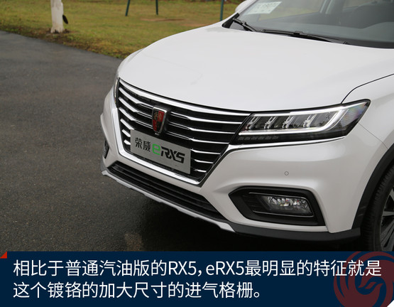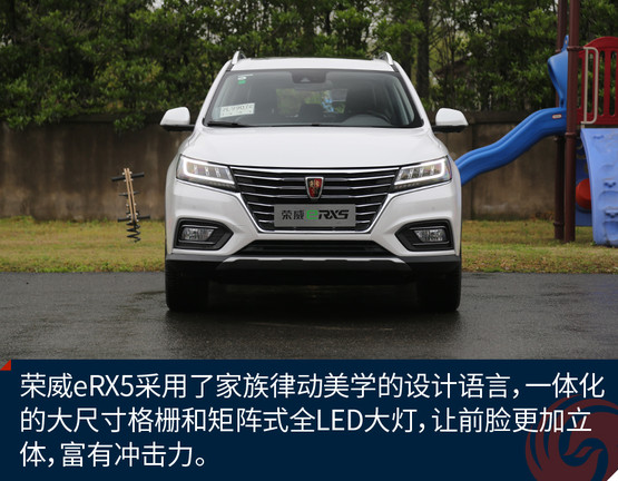 榮威eRX5的外觀設(shè)計(jì)來(lái)自于上汽榮威家族最新的“律動(dòng)設(shè)計(jì)”語(yǔ)言,整體外觀呈現(xiàn)出的是“鯨頭燕尾”的特點(diǎn)。通過(guò)車頭下壓、腰線勾勒、尾部?jī)?nèi)切等設(shè)計(jì),詮釋了“律動(dòng)”的美學(xué)理念。與汽油版RX5相比,車頭的鍍鉻前格柵尺寸更加大,造型更為舒展,與大燈融為一體。eRX5基于RX5采用的SSA+平臺(tái)打造,提供了插電版與純電版兩個(gè)版本,這兩款車實(shí)際幾乎是同時(shí)開(kāi)發(fā)的,尺寸方面更是一模一樣。插電版的eRX5車身兩側(cè)分別為加油口和充電口,純電動(dòng)續(xù)航60公里,綜合續(xù)航650公里。車身隨處可見(jiàn)新能源的標(biāo)識(shí),并且還擁有新能源的專屬顏色銀葉金。