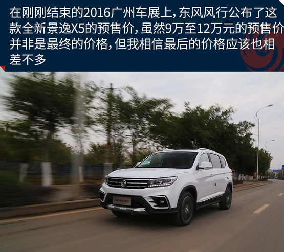 在剛剛結(jié)束的2016廣州車展上,東風風行公布了這款全新景逸X5的預售價,雖然9萬至12萬元的預售價并非是最終的價格,但我相信最后的價格應該也相差不多,最便宜的車型價格應該會在8萬至9萬之間,而頂配車型或許不高于12萬。