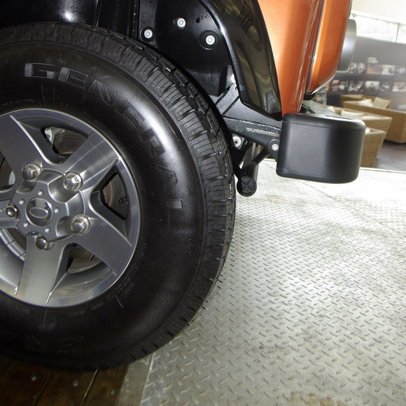 ????衛(wèi)士的接近角達(dá)到了驚人的47度,厚實(shí)的鋼板加工而成的前杠也是硬派越野車的標(biāo)志,這樣的前杠不僅可以在沖坡時(shí)保護(hù)車體,更可以掛載電動(dòng)絞盤等設(shè)備。