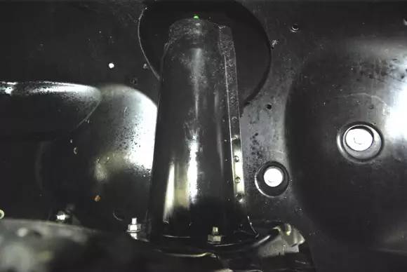 ????衛(wèi)士的底盤前視,衛(wèi)士作為一款硬派越野車,最小離地間隙達(dá)到了323mm(從圖上可以看到這一最小間隙位于前軸的差速器鼓包處),320mm的最小離地間隙意味著什么?一個(gè)人平躺在地面上,衛(wèi)士能從上方駛過(guò)而人不會(huì)有任何損傷。相比于一般SUV的200mm左右的最小離地間隙,衛(wèi)士顯然不在一個(gè)層級(jí)上。