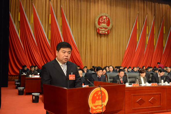 受縣十五屆人大常委會的委托,縣人大常委會主任李國際向大會報告工作。