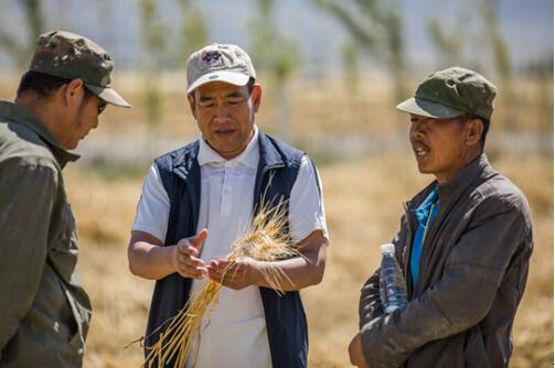 2017年9月是新疆哈密的小麥?zhǔn)崭罴?,全?guó)人大代表、治土人黨永富在田間考察化肥減量、農(nóng)業(yè)提質(zhì)的實(shí)際效果。