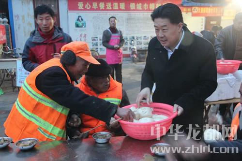 中華龍都網(wǎng)訊(周口報(bào)業(yè)全媒體記者 馬治衛(wèi) 通訊員 徐孫楊)3月20日早,新疆河南總商會(huì)會(huì)長(zhǎng)朱軍一行從新疆專(zhuān)程趕往太康,為該縣“愛(ài)心早餐”工程捐款10萬(wàn)元,并親自為環(huán)衛(wèi)工人端菜送饅頭,并向志愿者和環(huán)衛(wèi)工致以親切地慰問(wèn)。