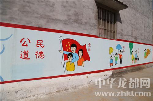 當(dāng)日16時(shí)許,記者在該村看到,干凈整潔的水泥路像玉帶在村中盤旋,街道兩側(cè)栽植不久的小樹(shù)在向人們招手,坑塘四周干凈整潔,綠樹(shù)環(huán)繞,塘水清澈,梳理有致,房前屋后干凈整潔……天空中雖然下著雨,但是記者遠(yuǎn)遠(yuǎn)的就聽(tīng)到了群眾的談笑聲和機(jī)械的轟鳴聲,走近,原來(lái)是村民們不顧天氣下雨,依然在自發(fā)地進(jìn)行道路清理工作。記者看到,該村墻體文化更讓村子增加了很多的“內(nèi)涵”。