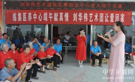 上午9點,鎮(zhèn)黨委書記張妍燕和鎮(zhèn)長劉景明等領導前來看望老人,并送來了米面油。他們和老人們坐在一起,包粽子,話家常,問冷暖。慰問演出開始后,他們和老人站在一塊,齊唱歌曲《東方紅》,并陪老人們觀看豐富多彩的文藝節(jié)目。87歲的張鳳英為了照顧父母,一生未婚,春節(jié)前腿摔斷了。剛剛可以走路的她,拄著拐杖參加活動,合唱時激動得老淚縱橫。