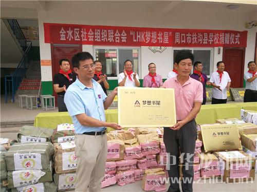 “LHK夢(mèng)想書屋”(L:LOVE 愛;H:HAPPY AND HEALTHY 健康和快樂;K:KIND 友善),是由鄭州市金水區(qū)社會(huì)組織聯(lián)合會(huì)和建業(yè)教育集團(tuán)共同發(fā)起的公益活動(dòng),計(jì)劃在未來的5到10年間,向貧困地區(qū)學(xué)校捐建100間“LHK夢(mèng)想書屋”,幫助孩子們開闊眼界、啟發(fā)心智、點(diǎn)亮夢(mèng)想、回饋社會(huì)。對(duì)鄭州愛心組織支持扶溝教育事業(yè)、為6所農(nóng)村學(xué)校捐建“LHK夢(mèng)想書屋”、助力教育扶貧的高尚情懷和善行義舉,扶溝縣委常委、宣傳部長馬昭才代表縣委、縣政府表示崇高的敬意和衷心的感謝,并希望各受贈(zèng)學(xué)校切實(shí)管理和使用好這批圖書,讓師生踏著人類成長的階梯,與圣賢為友,與經(jīng)典同行,加快推進(jìn)校園文化建設(shè),積極打造“書香校園”, 促進(jìn)扶溝教育更好更快發(fā)展。
