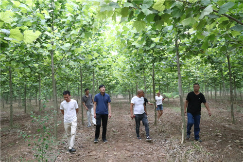 與前廟相鄰的大張村,是一個(gè)“天然大氧吧”。從大張村走出來(lái)的曹紅星在鄭州從事園林綠化多年,在朱口鎮(zhèn)黨委、鎮(zhèn)政府的支持和鼓勵(lì)下,他以1000元/畝的價(jià)格流轉(zhuǎn)了1000多畝土地,種植法桐、欒樹、國(guó)槐等綠化樹。有著豐富經(jīng)驗(yàn)的曹紅星在種植綠化樹的同時(shí),積極發(fā)展林下經(jīng)濟(jì),在綠化樹下種植紅薯、大蒜等,有效提高了土地的利用率,經(jīng)濟(jì)效益顯著提高。“平時(shí),綠化林地除草、抗旱、施肥需要用工,收種紅薯、大蒜等也需要用工,用工時(shí)貧困戶優(yōu)先。只要有勞動(dòng)能力,來(lái)這里就能掙錢?!辈芗t星說(shuō),林業(yè)經(jīng)濟(jì)的快速發(fā)展為鄉(xiāng)親們脫貧致富提供了保障。