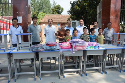 8月27日上午11時(shí)許,商水縣平店鄉(xiāng)大朱莊村小學(xué)大 門外,突然停放一輛廂式貨車??吹接袉挝凰蛠?lái)了“開(kāi)學(xué)禮”,學(xué)校老師和學(xué)生滿臉興奮 、七手八腳和來(lái)人一塊卸下一些嶄新的課桌凳、書包文具等學(xué)習(xí)辦公用品。