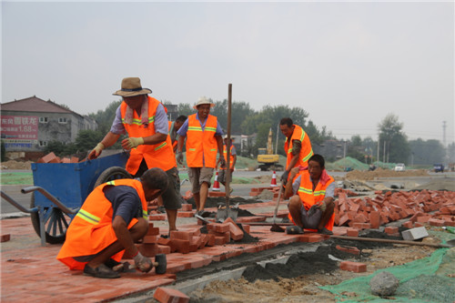8月28日上午,記者在周項路武盛大道交叉口看到,工程車輛正在馬路南側(cè)人行道鋪設(shè)柏油路面,十幾名工人頂著烈日,在現(xiàn)場作業(yè)。周項路苑寨市場門前,施工人員正在向基坑內(nèi)打樁,施工人員告訴記者,由于周邊地質(zhì)屬于流沙段,容易塌方,因此需要使用LV拉森鋼板樁進行加固。在李埠口鄉(xiāng)政府東側(cè),工人們正在鋪設(shè)地磚。周項路港區(qū)路段,隨處可見施工人員。