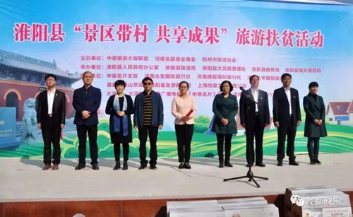 金秋時(shí)節(jié),天藍(lán)水碧。11月3日上午,“景區(qū)帶村,共享發(fā)展”旅游扶貧走進(jìn)淮陽(yáng)活動(dòng),在國(guó)家級(jí)旅游扶貧開(kāi)發(fā)村、河南省鄉(xiāng)村旅游特色村一一該縣城關(guān)鎮(zhèn)從莊行政村隆重舉行。來(lái)自河南各地市25個(gè)旅游團(tuán)隊(duì)1400余名游客參加了此次活動(dòng),河南廣播電視臺(tái)《中原名片》欄目全程直播活動(dòng)情況,直播間觀眾互動(dòng)達(dá)55萬(wàn)多人次。開(kāi)幕式上,副縣長(zhǎng)張潔致辭,縣政府辦公室駐從莊村第一書記推介從莊行政村鄉(xiāng)村旅游情況,縣旅游局與河南永安國(guó)際旅行社、河南攜程國(guó)際旅行社簽訂戰(zhàn)略合作協(xié)議。河南大華國(guó)際旅行社、河南攜程國(guó)際旅行社、上海恰豪文化傳播有限公司、中原旅游大咖聯(lián)盟等企業(yè)為從莊行政村及貧困戶捐贈(zèng)油、米、棉被等慰問(wèn)品及現(xiàn)金2萬(wàn)元??h電商服務(wù)平臺(tái)、從莊村民展銷布老虎、泥泥狗、土雞蛋、兔子肉、干野菜等農(nóng)副手工產(chǎn)品40余樣?;顒?dòng)結(jié)束后,全體游客赴龍湖國(guó)家濕地公園、太昊陵景區(qū)觀光游覽。