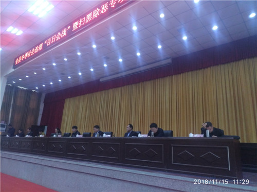 11月15日上午,鹿邑縣在縣委黨校一樓報(bào)告廳召開(kāi)全縣冬季社會(huì)治安“百日會(huì)戰(zhàn)”暨掃黑除惡專(zhuān)項(xiàng)斗爭(zhēng)推進(jìn)會(huì)。會(huì)議對(duì)全縣冬委社會(huì)治理“百日會(huì)戰(zhàn)”第一次工作以及全縣掃黑除惡專(zhuān)項(xiàng)斗爭(zhēng)第五次工作進(jìn)行通報(bào);縣領(lǐng)導(dǎo)梁建松、侯自峰、王曉征、何新敏、齊梅英、魯建軍等出席會(huì)議??h直各局委、各鄉(xiāng)鎮(zhèn)辦事處主要負(fù)責(zé)人、綜治辦主任和各基層派出所長(zhǎng)、司法所長(zhǎng)以及來(lái)自公安、檢察、法院、司法戰(zhàn)線(xiàn)的干警近千人參加會(huì)議。