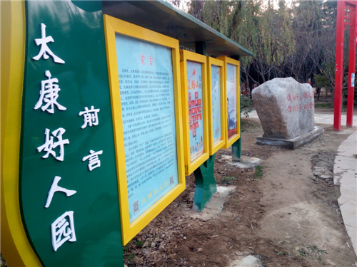 為把好人精神鐫刻在太康發(fā)展和進步的進程中,把太康建設(shè)成為好人之城、文明之城、和諧之城、美麗之城、幸福之城,從2018年9月起,太康“好人園”經(jīng)過緊鑼密鼓地籌建,如今開園迎賓。好人園緊扣“好人”主題,以道德風尚建設(shè)為主線,在休閑公園的基礎(chǔ)上,秉承“因地制宜、因勢利導”的原則,堅持寓教于園、寓教于景、寓教于樂,以小處著手、局部微調(diào)的手法,通過“好人步道”“好人亭”“好人樹”“好人大舞臺”“好人精神長廊”五大版塊,將道德風尚高地建設(shè)與公園的整體風格和功能定位完美結(jié)合。好人園兼顧了公園本身特色與文化傳播需要,利用林蔭小道,以石、亭、牌等基礎(chǔ)設(shè)施為載體,圖文并茂地展示太康近年來獲得國家和省級表彰的道德典型、身邊榜樣的先進事跡,一步一景,隨景賦形。市民在游園過程中,潛移默化地接受“真、善、美”的教育和熏陶,激發(fā)人們見賢思齊,榜樣的引領(lǐng)作用不斷放大。