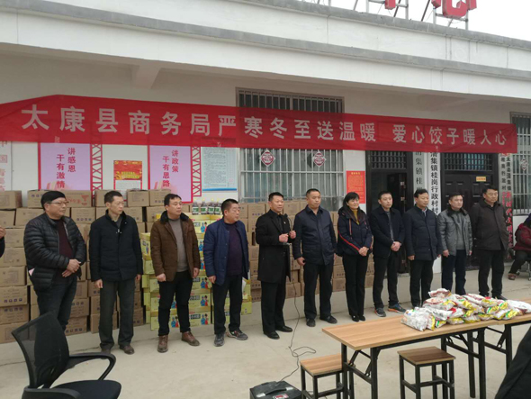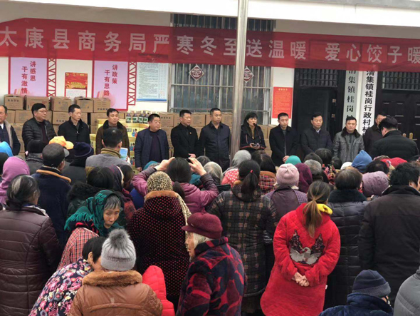 12月21日下午,冬至前夕,太康縣副縣長(zhǎng)喬偉、縣商務(wù)局局長(zhǎng)李曉紅,清集鎮(zhèn)黨委書(shū)記吳文靜,帶著對(duì)貧困群眾的關(guān)心、關(guān)愛(ài),到太康縣清集鎮(zhèn)張子影行政村、桂崗行政村開(kāi)展嚴(yán)寒冬至送溫暖,愛(ài)心餃子暖人心扶貧慰問(wèn)活動(dòng)。