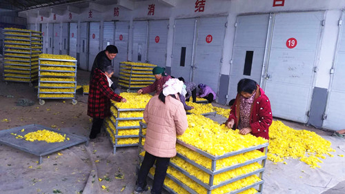 “我們提供優(yōu)質種苗給種植戶,并且提供免費的技術指導以及技術培訓,群眾在種植金絲皇菊的過程中遇見問題都可以隨時來咨詢;在金絲皇菊成熟后我們會對老百姓所種植的菊花進行保底收購,保證種植戶的利潤不受影響。”據了解,目前僅張辛行政村就有菊花種植合作社3個,種植金絲皇菊、雪菊、貢菊等各類菊花近千畝,帶動全村貧困人員由原來的303戶、998人下降至現在的7戶、18人,全村人靠種植菊花實現創(chuàng)收致富。
