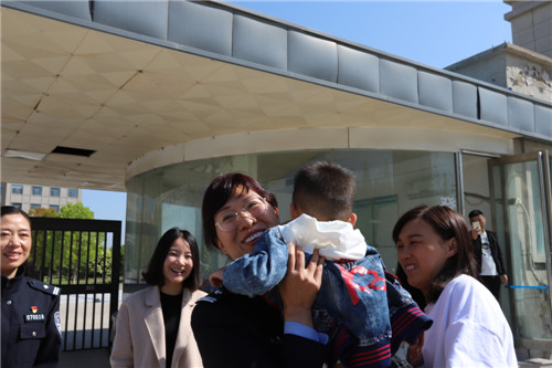 過(guò)了一會(huì)兒,微信群里傳來(lái)消息,稱小男孩是小區(qū)一居民的親戚,家人正在急切尋找。陳愛(ài)華趕緊領(lǐng)著孩子下樓,在小區(qū)門口見(jiàn)到心急如焚的孩子父母,并把孩子交給他們。母子相擁而泣,并連聲向陳愛(ài)華道謝。