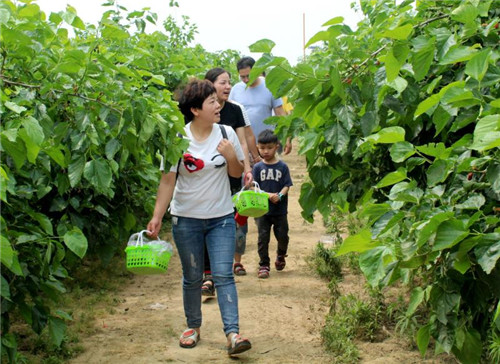 “今天是星期天,帶孩子一起來桑椹園采摘桑椹,一是欣賞一下桑椹園美麗的風光,二是讓孩子體驗一下采摘的樂趣?!?月19日,來自川匯區(qū)的高女士高興地說。