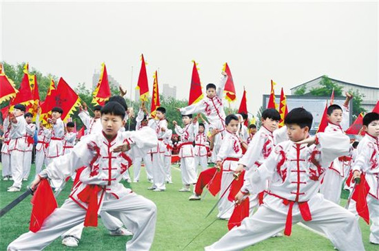 5月18日上午,為期一周的商水縣2019年“全民健身月”系列活動啟動。據(jù)悉,系列活動期間,該縣將舉辦“縣長杯”中學(xué)生足球賽、“萬步有約”職業(yè)人群健走、中小學(xué)生陽光體育運(yùn)動會、周口市第四屆鞭陀交流賽等活動,全縣共有66支代表隊5000余人參與其中。圖為啟動儀式上的節(jié)目展演。記者 付永奇 攝