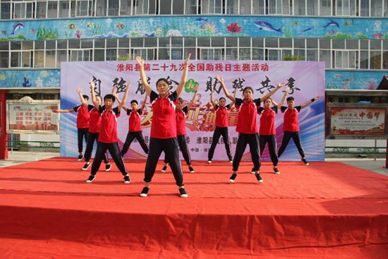 活動儀式上,縣特殊教育學校學生和縣音樂家協(xié)會文藝志愿者分別為觀眾表演了精彩的文藝節(jié)目??h特殊教育學校的學生首先表演了舞蹈《海草舞》,文藝志愿者周紅春演唱了歌曲《愛的奉獻》、《天南地北淮陽人》、李泉稼小朋友演唱了豫劇《洼洼地里好莊稼》,淮陽特殊教育學校學生表演了節(jié)目《感恩的心》。精彩的表演贏得了現(xiàn)場觀眾的陣陣掌聲。