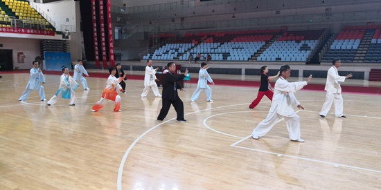 5月19日,市直機關第三屆職工運動會太極拳比賽落下帷幕,趙提等7名選手獲24式太極拳比賽一等獎,高廣華獲42式太極拳比賽一等獎,安琪獲42式太極劍比賽一等獎。圖為比賽現(xiàn)場。 記者 張洪濤 攝
