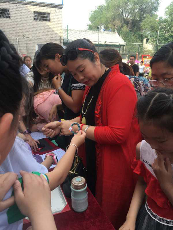 5月25日上午,沈丘縣中國結第七代傳承人李?;ㄗ哌M槐店鎮(zhèn)回民小學,和學校“中國結”手工編織興趣班的20名學生舉行“愛心義賣,情暖校園”主題活動。不到半小時,100多件作品被搶購一空還預定了很多。據悉,這次義賣共得到1200余元,將全部捐給“槐店鎮(zhèn)中心學校教育基金”,用來資助該鎮(zhèn)經濟困難師生、獎勵優(yōu)秀教師和學生、資助教育教研等重大活動項目。