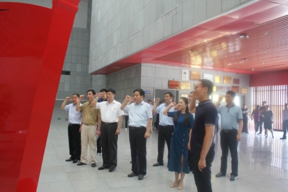在扶溝縣委常委、統(tǒng)戰(zhàn)部長曹來凌,副縣長史凱歌等的陪同下,李飛一行首先參觀了吉鴻昌將軍紀念館,并在館內(nèi)舉行莊嚴的重溫入黨宣誓儀式,接受愛國主義教育和革命精神洗禮。