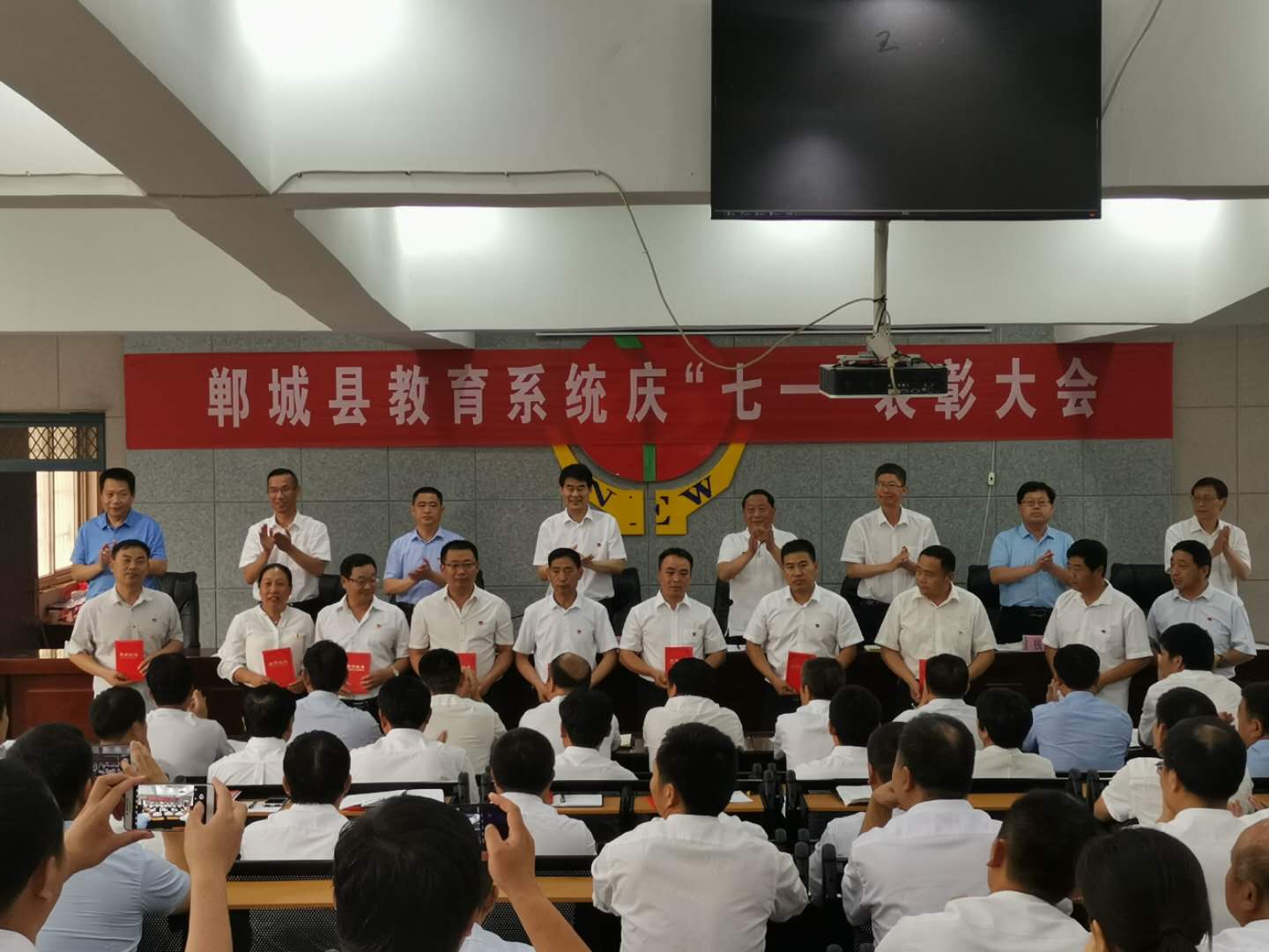 6月26日下午,鄲城縣教育系統(tǒng)慶“七一”表彰大會(huì)召開??h教體局黨組書記、局機(jī)關(guān)黨委書記、局長(zhǎng)劉現(xiàn)營(yíng)出席會(huì)議并講話。局黨組成員、副局長(zhǎng)張祥增主持會(huì)議。