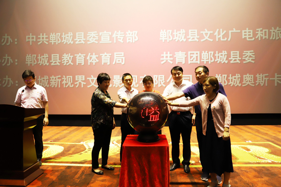 鄲城縣委宣傳部、鄲城縣文化廣電和旅游局、共青團(tuán)鄲城縣委、縣教體局等有關(guān)單位負(fù)責(zé)人,縣直各單位分管副職和代表,鄲城新視界文化影視有限公司員工共400余人參會(huì),并共同觀影。