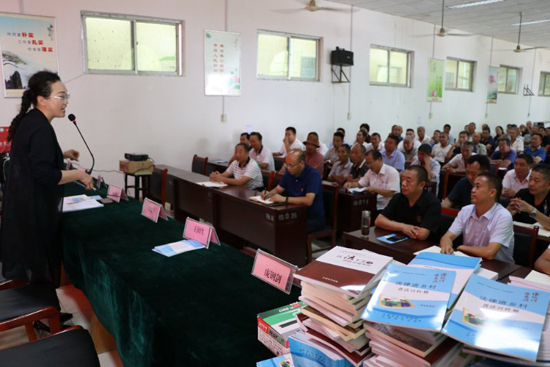 鄉(xiāng)村兩級干部學(xué)法的熱情感動了崔姝娉律師,她顧不上喝水和休息,隨機走上講臺開始講座。如何圍繞預(yù)防職務(wù)犯罪、從嚴治黨、反腐倡廉、提升自身素養(yǎng)……每一個內(nèi)容,崔姝娉都列舉了一些實際案列,并通過以案說法、以案釋法的方式,多角度重點分析了鄉(xiāng)村兩級干部多發(fā)易發(fā)違法違紀的薄弱環(huán)節(jié),提出預(yù)防違法違紀的對策和建議,讓大家筑牢法律防線,防止違法違法違紀。同時,崔姝娉律師還和在座的鄉(xiāng)村干部進行了互動,并向大家講解了調(diào)解糾紛的技巧和方法。