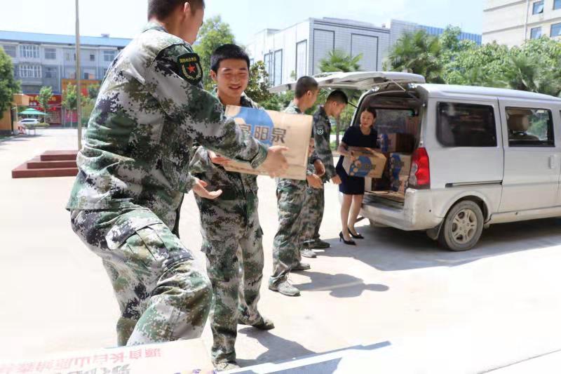 7月29日,太康縣清華園書(shū)店負(fù)責(zé)人李丹駕駛面包車,先后來(lái)到縣人民武裝部和消防大隊(duì),為部隊(duì)官兵和消防指戰(zhàn)員送來(lái)礦泉水等。讓他們?cè)诟邷靥鞖饫锔惺艿角迦A園書(shū)店送來(lái)的絲絲清涼?!八麄兤匠S?xùn)練、滅火很辛苦,作為一個(gè)愛(ài)心企業(yè),關(guān)心部隊(duì)官兵是我應(yīng)盡的義務(wù)?!崩畹ばχf(shuō)。