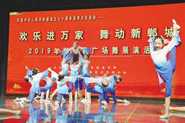 近日,以“歡樂進(jìn)萬家 舞動新鄲城”為主題的2019年鄲城縣廣場舞展演活動在單程縣融媒體中心演播廳舉行。來自全縣各個鄉(xiāng)鎮(zhèn)的20支代表隊(duì)依次登場,參賽隊(duì)員身著統(tǒng)一服裝,隨著優(yōu)美的旋律翩翩起舞。記者 徐松 通訊員 朱應(yīng)召 攝