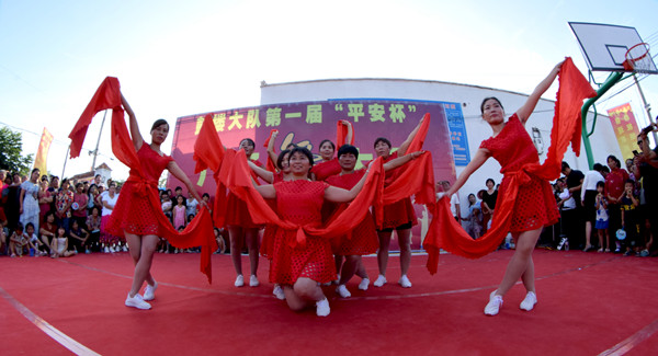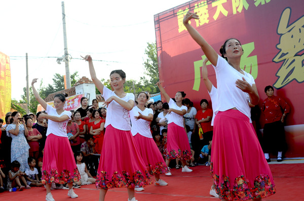 為了把節(jié)目辦的出彩,村民們非常認(rèn)真,不僅動(dòng)員老少婦女們參與排練,晚上吃過飯?jiān)诖暹呉槐楸榈木殻钡侥苁炀毶蠄?chǎng),另外,他們還請(qǐng)來劇團(tuán)的演員當(dāng)評(píng)委,每場(chǎng)精彩的演出,博得大伙叫好聲。評(píng)委也被邀上臺(tái) ,臨場(chǎng)助興,多才多藝的村民也見縫插針地表演一番才藝,一場(chǎng)村頭廣場(chǎng)舞大賽有聲有色,笑聲連連,展示了農(nóng)民在奔小康道路上的自信、幸福和執(zhí)著。