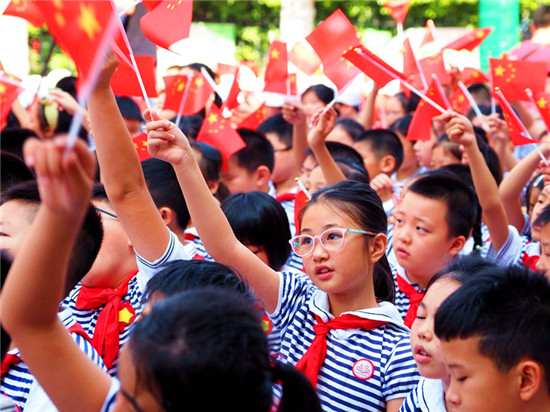 “我和我的祖國,一刻也不能分割……”9月6日上午,長沙市未成年人“傳承紅色基因 向國旗敬禮”主題教育實踐活動啟動儀式在芙蓉區(qū)大同小學(xué)正式舉行,伴隨著《我和我的祖國》的美妙旋律,上千名青少年齊聲高歌,鮮艷的五星紅旗一起舞動,匯成一片紅色的海洋。