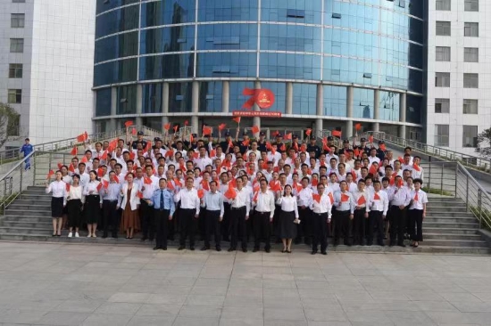 我和我的祖國一刻也不能分割,無論我走到哪里都留下一首贊歌,我歌唱每一座高山,我歌唱每一條河……嘹亮的歌聲在開發(fā)區(qū)辦公樓前的小廣場久久回蕩。