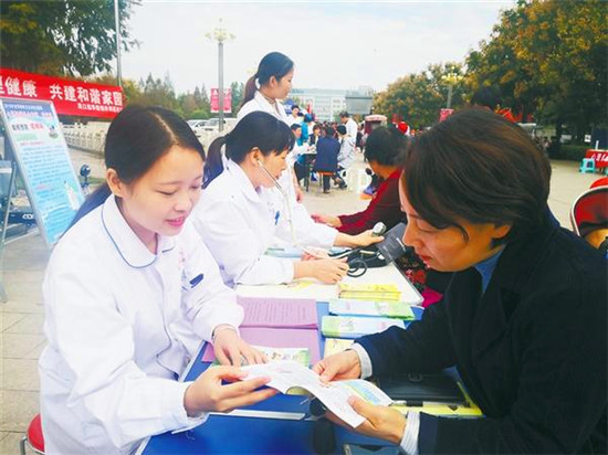 10月10日是世界精神衛(wèi)生日,當(dāng)日上午9時至11時,周口市衛(wèi)健委組織我市28家醫(yī)院在川匯區(qū)文化廣場舉辦主題為“心理健康社會和諧,我行動”的義診活動?;顒蝇F(xiàn)場,100多名醫(yī)務(wù)人員向群眾提供免費(fèi)疾病咨詢,宣傳普及精神衛(wèi)生健康醫(yī)學(xué)知識,紛紛開出身心健康處方,受到群眾的熱烈歡迎。