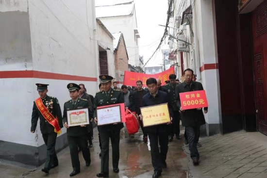 隨后,周口軍分區(qū)政治部主任李揚(yáng),太康縣委副書記、政法委書記劉海艇,縣委常委、副縣長(zhǎng)韓維俊,縣委常委、人武部部長(zhǎng)于永前,人武部政委郭立君等領(lǐng)導(dǎo)給張潔的母親盧靈芝送去了立功喜報(bào)、二等功臣家庭牌匾和慰問(wèn)品、慰問(wèn)金。
