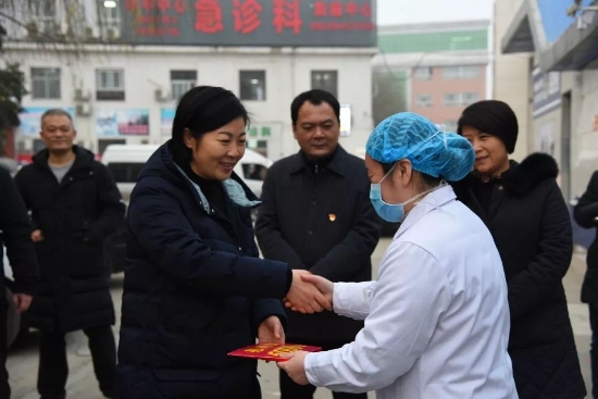 鄲城縣第一醫(yī)療健康服務(wù)集團(tuán)作為河南省新型肺炎救治定點(diǎn)醫(yī)院時(shí)刻牽動(dòng)著縣委縣政府領(lǐng)導(dǎo)的心。1月23日,縣委書記羅文閣、縣政府縣長李全林、縣政府副縣長肖煒來到縣醫(yī)院親切慰問一線醫(yī)護(hù)人員,并給一線工作人員帶去春節(jié)祝福。