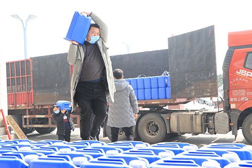 該公司總經(jīng)理馬媛媛介紹,她老家是周口的,在鄭州開辦的公司,公司業(yè)務(wù)主要是搞醫(yī)療物質(zhì)配送?!爱?dāng)前嚴(yán)峻的疫情形勢真得讓人很擔(dān)心,為了能夠給家鄉(xiāng)提供一些力所能及的幫助,公司特意購置了這批醫(yī)用物質(zhì)以解家鄉(xiāng)防控疫情的燃眉之急。”馬媛媛介紹,為了能在市場上購到這批貨物,公司從除夕晚上就開始聯(lián)系貨物,打了近百個電話,直到大年初四才在山東的一家公司聯(lián)系到貨源,排了6天隊之后,才購到10000斤消毒液、4000副醫(yī)用手套,貨到之后,公司馬不停蹄,立即拉了過來,讓這批貨物盡快派上用場。