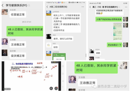 縣第二高級中學高三畢業(yè)班的班主任趙曉莉老師說:“疫情阻擋不了我對學生的關(guān)懷,疫情阻擋不了我對職責的擔當!這就是我們二高人的精神和情懷!”新冠肺炎發(fā)生以來,學校以班級為單位組建網(wǎng)絡(luò)課堂,讓學生加入進來,在線上直播課堂,學生聽課,線下布置作業(yè),學生按時打卡完成,實現(xiàn)停課不停學,教師和學生“在家上課”!