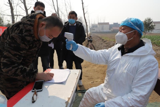 起初,苑統(tǒng)俊配合村干部在村里宣傳疫情防控政策、方法,1月25日,我省啟動一級應急響應,港區(qū)迅速做出響應,在轄區(qū)內各個村莊社區(qū)設置疫情監(jiān)控點,限制人員流動,全天候監(jiān)測進出人員身體狀態(tài)。苑統(tǒng)俊擔起監(jiān)控點村醫(yī)的職責,負責該村一至四組的疫情防控。他每天騎電動車前往孫莊村監(jiān)測點值守,為過往人員測量體溫、觀察外地返鄉(xiāng)人員狀態(tài)、登記觀察正處在隔離期的從湖北、武漢返鄉(xiāng)人員體溫數(shù)據(jù),為鄉(xiāng)村干部開展防控工作提供技術支持。