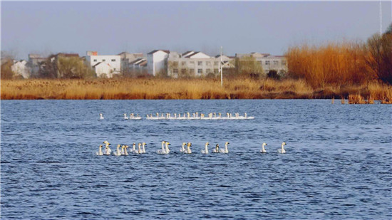 據(jù)在淮陽(yáng)龍湖北岸疫情卡點(diǎn)值守的安保人員王寶峰介紹,除了這一批50多只白天鵝來(lái)龍湖歇腳外,幾天前的2月18日,還有100多只白天鵝在太昊陵前廣場(chǎng)上空盤旋一圈后飛到了龍湖,在龍湖停留一天后向北方遷徙了。