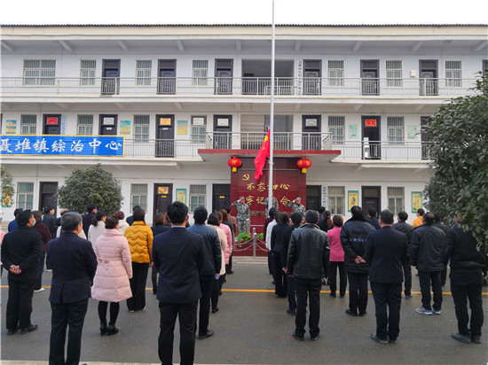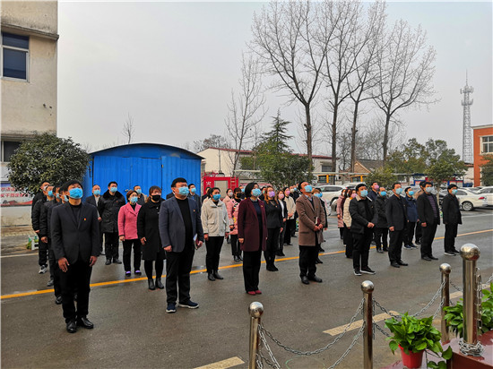 按照疫情防控復(fù)產(chǎn)復(fù)工工作安排,2月24日為恢復(fù)上班的第一天。8時(shí)許,西華縣聶堆鎮(zhèn)政府全體干部衣冠莊重、佩戴口罩、按照間隔1.5米的距離整齊地站在國(guó)旗臺(tái)前共同舉行隆重的升國(guó)旗儀式,以一種不一樣的方式打開(kāi)新的工作局面。