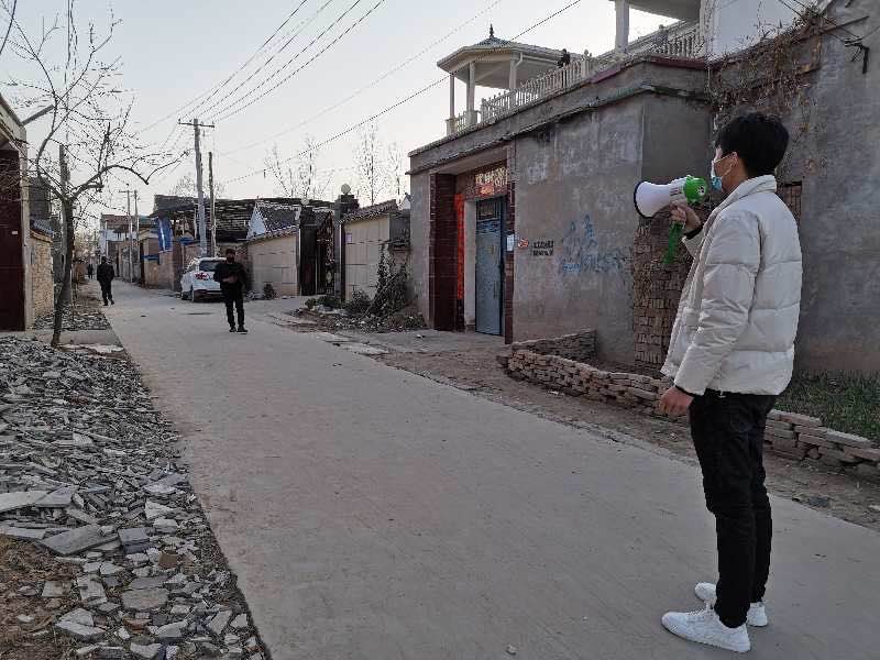 小喇叭,大溫情。“各位村民,大家新年好,我是咱老冢鎮(zhèn)政府的工作人員,也是咱李鳳行政村的包村干部,最近新型冠狀病毒疫情形勢(shì)嚴(yán)峻,請(qǐng)各位村民盡量不要出門......”師東光每天都會(huì)帶上夜間充滿電的高音小喇叭,每天上午、下午都要在村里的大街胡同走上一圈,用小喇叭宣傳勸阻大家盡量不要出門,不要在村內(nèi)聚集扎堆聊天、打牌。連續(xù)多日,他用小喇叭傳送著大溫暖。