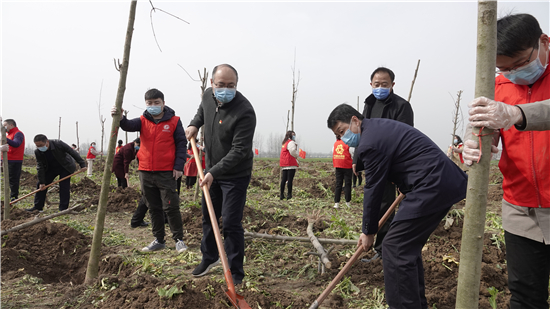 三埋土、兩踩實(shí)、一提根……三川大地春潮涌,植樹造林正當(dāng)時(shí)。3月12日上午,鄲城縣四個(gè)班子領(lǐng)導(dǎo)崔衛(wèi)國、李建軍、王偉等和廣大志愿者、群眾一起來到皇姑河畔義務(wù)植樹現(xiàn)場(chǎng),揮鍬鏟土,栽植新綠,為鄲城大地再添一片綠意。