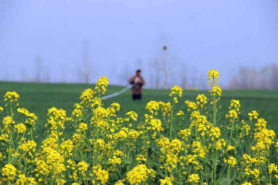 3月24日,商水縣郝崗鎮(zhèn)郝內(nèi)村農(nóng)民在扶貧示范田間忙著春耕生產(chǎn)。