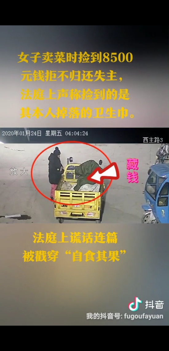 庭審中,面對(duì)監(jiān)控錄像顯示楊某彎腰撿拾錢款的畫面,楊某本人百般抵賴、謊話連篇,拒不承認(rèn)撿到錢款。當(dāng)法官詢問(wèn)楊某如何解釋監(jiān)控畫面中顯示其撿到了白色包裹時(shí),楊某居然說(shuō)是彎腰撿東西了,但撿的不是錢,撿的是她自己的衛(wèi)生巾。法官再次向楊某告知當(dāng)事人作虛假陳述的后果及應(yīng)當(dāng)承擔(dān)的法律責(zé)任,楊某仍一口咬定撿到的不是錢,撿的是衛(wèi)生巾。法官遂傳喚現(xiàn)場(chǎng)目擊證人出庭作證,兩名證人依法進(jìn)行了法庭宣誓,明確表示見到了楊某撿起地上一包錢并放入其本人包中的行為。此時(shí),原告又提交了一份錄音證據(jù),法官予以當(dāng)庭播放。錄音清晰顯示,楊某在電話中曾經(jīng)承認(rèn)1月24日早上撿到錢款的行為。