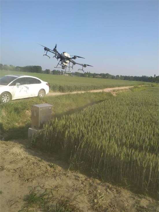 現(xiàn)在正值小麥孕穗抽穗期的關(guān)健時(shí)間節(jié)點(diǎn),也是各種病蟲害的高發(fā)期,做好這一時(shí)期的田間管理工作對確保小麥的豐收至關(guān)重要。將殺蟲劑、殺菌劑、微肥、抗旱劑等混合加水噴霧能同時(shí)實(shí)現(xiàn)防治小麥病蟲害,預(yù)防干熱風(fēng),防治倒伏和增加千粒重的效果。利用無人機(jī)作業(yè),提高了工作效率,提升了用藥效果,降低了勞動成本。
